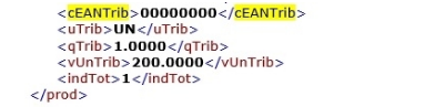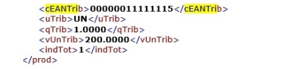 Valor para o campo cEANTrib preenchido apenas com zeros;