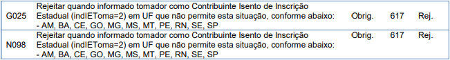 Rejeição 617: UF do tomador não aceita ISENTO com Inscrição Estadual (CT-e)