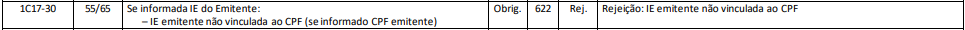 Essa rejeição ocorre quando a IE do emitente não esta vinculada ao CPF.