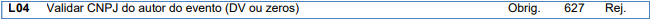 Essa rejeição ocorre quando o CNPJ do autor do evento está inválido.