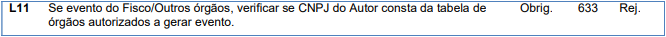 Se evento do Fisco/Outros órgãos, verificar se CNPJ do Autor consta da tabela de órgãos autorizados a gerar evento.