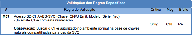 Rejeição 638: Já existe CT-e autorizado com esta numeração (CT-e)