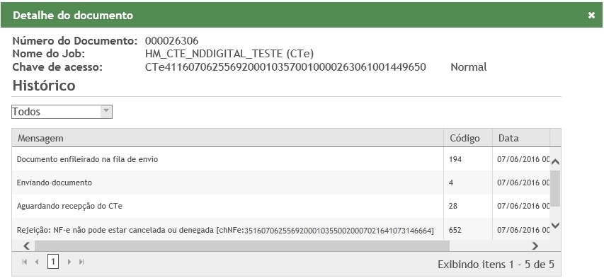 Rejeição 652: NF-e não pode estar cancelada ou denegada (CT-e)