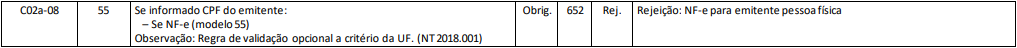 Rejeição 652: NF-e para emitente pessoa física (NF-e)