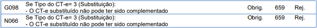 Rejeição 659: CT-e substituído não pode ter sido complementado (CT-e)