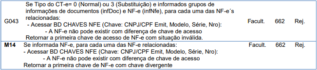 Rejeição 662: NF-e com diferença de Chave de Acesso (CT-e)
