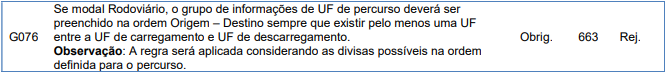 Rejeição 663: Percurso informado inválido (MDF-e)