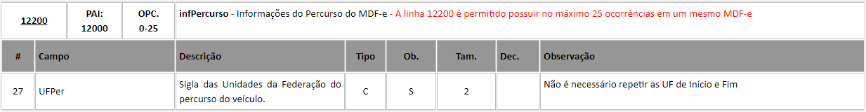Para clientes que emitem o arquivo em TXT o campo infPercurso é referente a linha 12200, conforme podemos visualizar abaixo nos manuais da NDD.