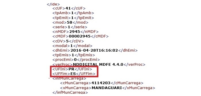 O primeiro caso é quando os Estados de início e fim do percurso fazem fronteira e é informado o percurso (tag infPercurso).