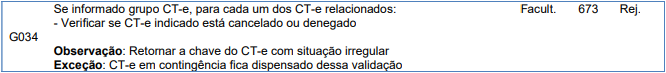 Rejeição 673: CT-e informado não pode estar cancelado/denegado na base da SEFAZ[chCTe: XXXXXXXXXXXXXXXXXXXXXXXXXXXXXXXXXXXXX] (MDF-e)