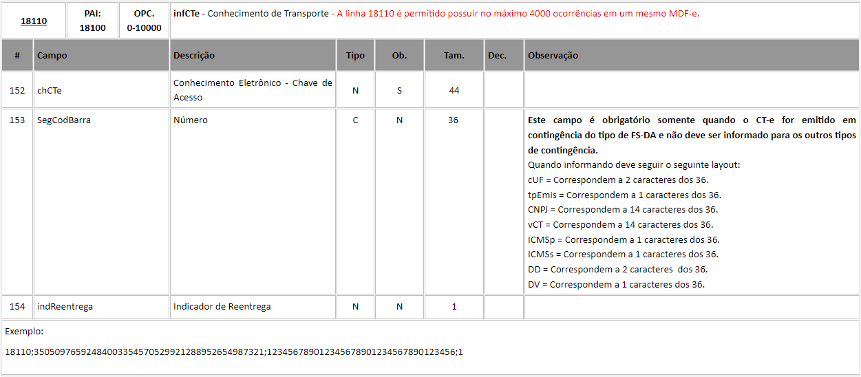 Para clientes que emitem o arquivo em TXT o campo infCTe é referente a linha 18110, conforme podemos visualizar abaixo nos manuais da NDD.