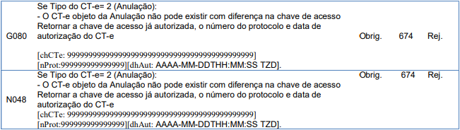 Rejeição 674: CT-e Objeto de Anulação com diferença de Chave de Acesso (CT-e)