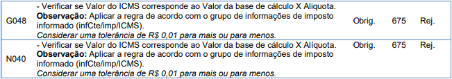 Rejeição 675: Valor do imposto não corresponde à base de cálculo X alíquota (CT-e)