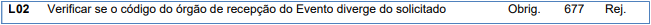 Essa rejeição ocorre quando o Órgão de recepção do evento está inválido.