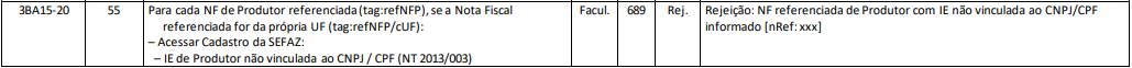 Rejeição 689: NF referenciada de Produtor com IE não vinculada ao CNPJ/CPF informado (NF-e)