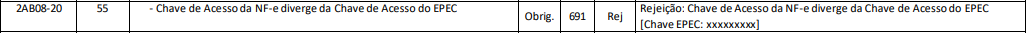 Rejeição 691: Chave de Acesso da NF-e diverge da Chave de Acesso do EPEC (NF-e)
