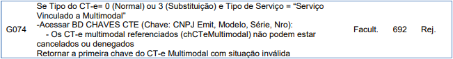 Rejeição 692: CT-e multimodal referenciado não pode estar cancelado ou denegado (CT-e)