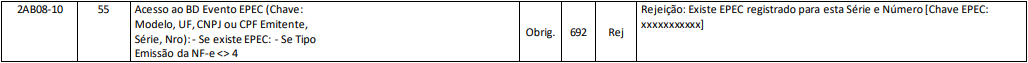Rejeição 692: Existe EPEC registrado para esta Série e Número (NF-e)