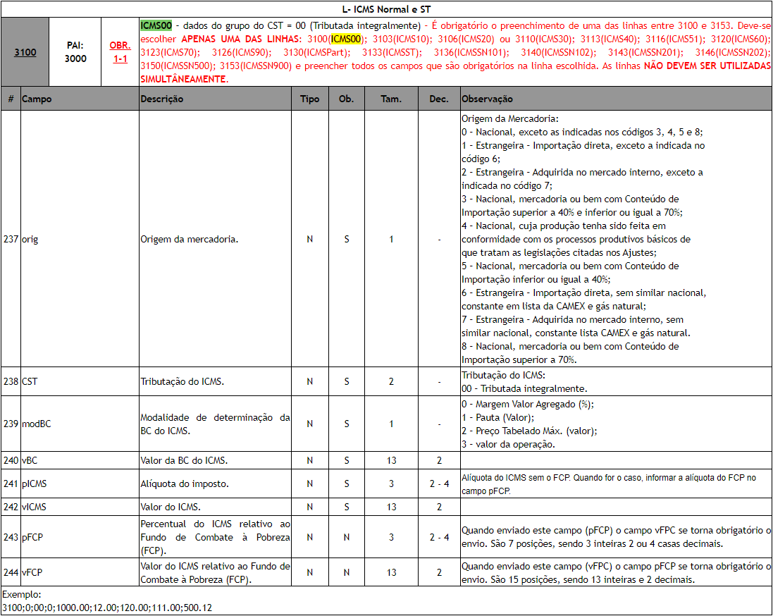 Para clientes que emitem o arquivo em TXT o campo ICMS00 é referente a linha 3100, conforme podemos visualizar abaixo nos manuais da NDD Tech.