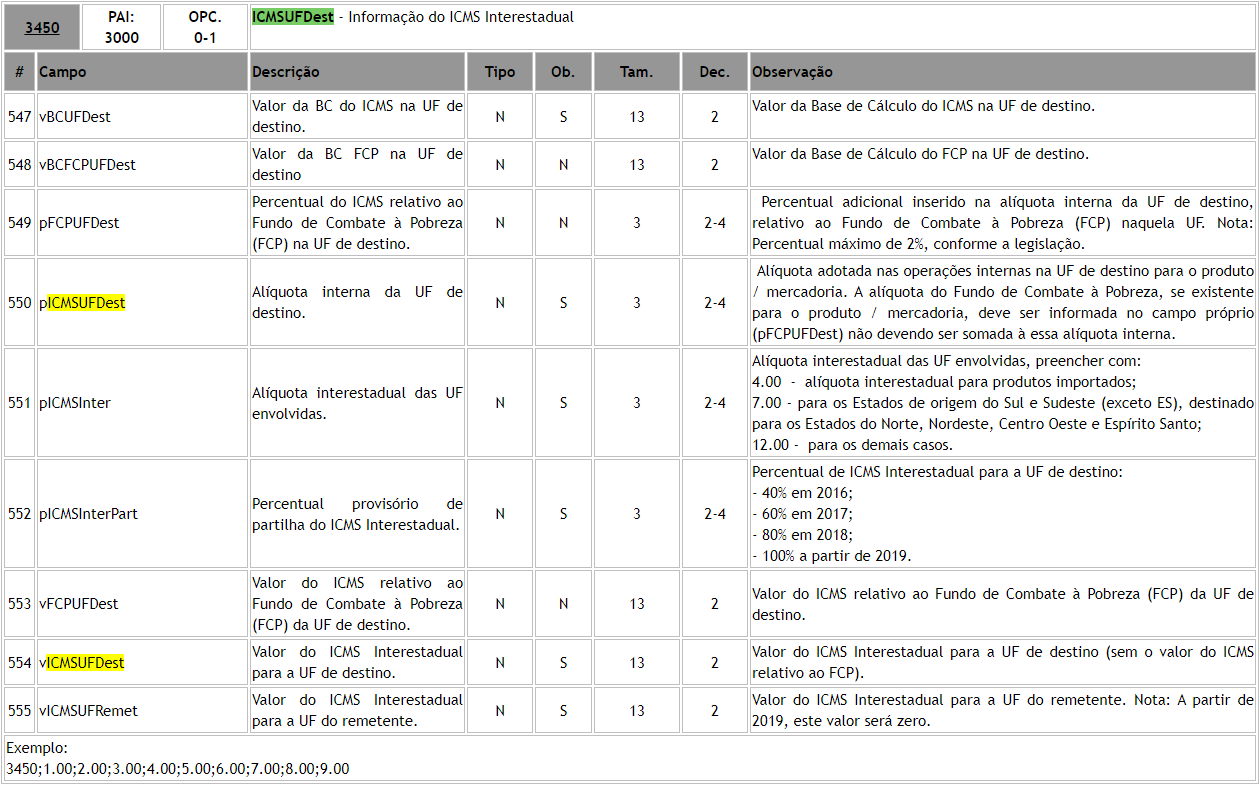 Para clientes que emitem o arquivo em TXT o campo ICMSUFDest é referente a linha 3450, conforme podemos visualizar abaixo nos manuais da NDD Tech.
