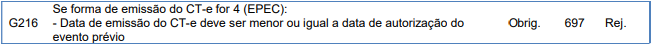 Rejeição 697: Data de emissão do CT-e deve ser menor igual à data de autorização da EPEC (CT-e)