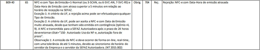 Rejeição 704: NFC-e com Data-Hora de emissão atrasada (NFC-e)