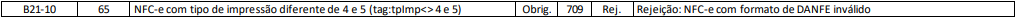 Rejeição 709: NFC-e com formato de DANFE inválido (NFC-e)