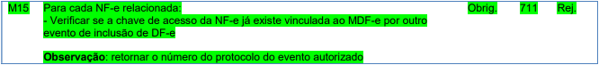 Rejeição 711: NF-e já está vinculada ao MDF-e por outro evento (MDFe)
