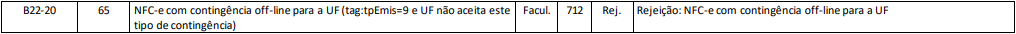 Rejeição 712: NFC-e com contingência off-line para a UF (NFC-e)