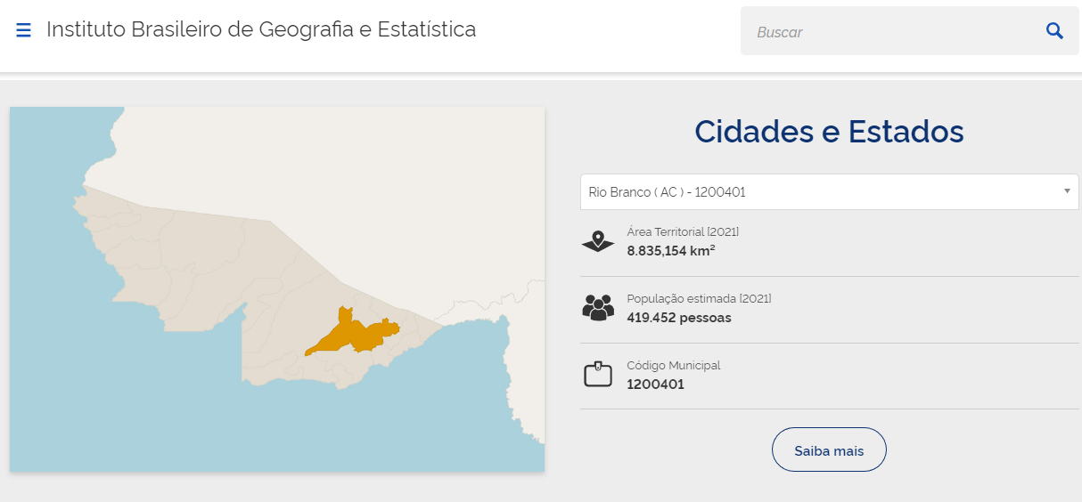 Verifique no site do IBGE o código do município desejado, ao acessar a URL, utilize a busca apresentada na imagem abaixo, sendo necessário informar apenas o nome da cidade.