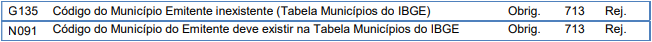 Rejeição 713: Município do Emitente inexistente (CT-e)