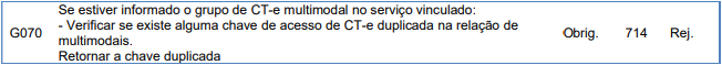 Rejeição 714: Chave de CT-e duplicada na relação de CT-e Multimodal (CT-e)