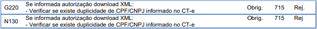 Rejeição 715: Documento autorizado ao XML duplicado no CT-e (CT-e)