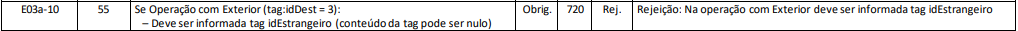 Rejeição 720: Na operação com Exterior deve ser informada tag idEstrangeiro (NF-e)