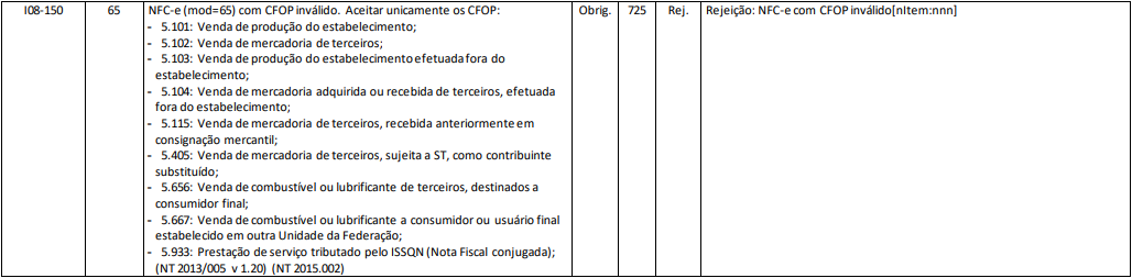 Rejeição 725: NFC-e com CFOP inválido (NFC-e)