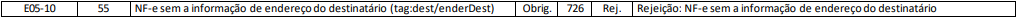 Rejeição 726: NF-e sem a informação de endereço do destinatário (NF-e)