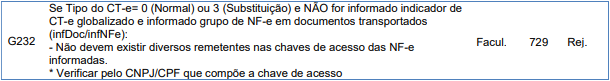 Rejeição 729: NF-e de múltiplos emitentes informadas nos documentos transportados sem indicador de CT-e Globalizado (CT-e)