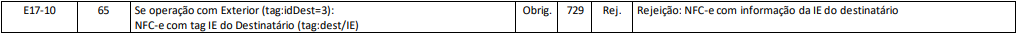 Rejeição 729: NFC-e com informação da IE do destinatário (NFC-e)