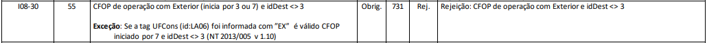 Rejeição 731: CFOP de operação com Exterior e idDest <> 3 (NF-e)