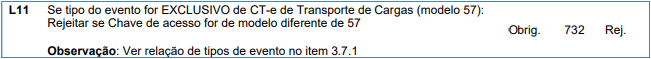 Rejeição 732: Chave de acesso inválida (modelo diferente de 57) (CT-e)