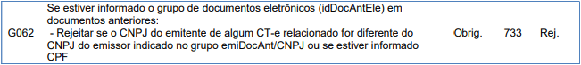 Rejeição 733: CNPJ do documento anterior deve ser o mesmo indicado no grupo emiDocAnt (CT-e)