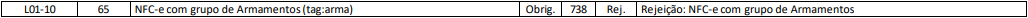 Rejeição 738: NFC-e com grupo de Armamentos (NFC-e)