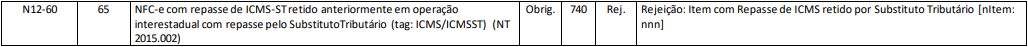 Rejeição 740: Item com Repasse de ICMS retido por Substituto Tributário (NFC-e)