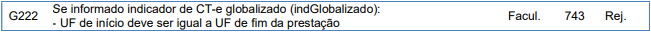 Rejeição 743: CT-e Globalizado não pode ser utilizado para operação interestadual (CT-e)