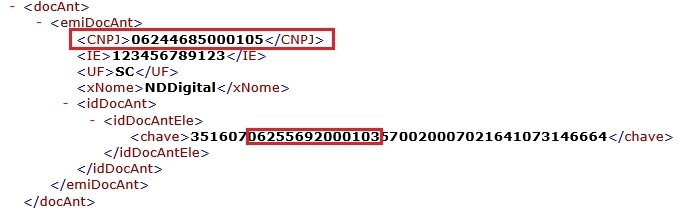 Como podemos observar há divergência nos CNPJS informando na tag e Lembrando que esta TAG é obrigatória apenas em caso de CT-e de referência ou de redespacho.