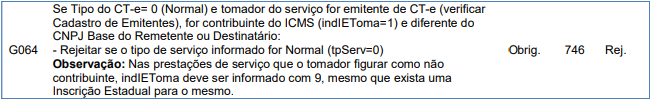 Rejeição 746: Tipo de Serviço inválido para o tomador informado (CT-e)