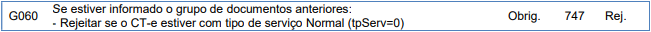 Rejeição 747: Documentos anteriores informados para Tipo de Serviço Normal (CT-e)