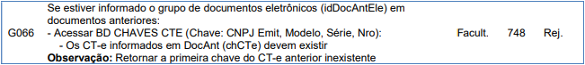 Rejeição 748: CT-e referenciado em documentos anteriores inexistente na base de dados da SEFAZ (CT-e)
