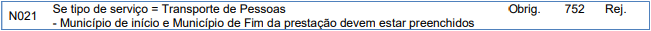 Rejeição 752: Município de início e Fim da prestação devem estar preenchidos para Transporte de Pessoas (CT-e)