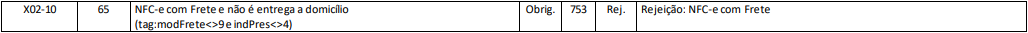 Rejeição 753: NFC-e com Frete (NFC-e)